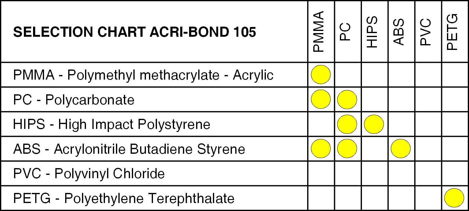 AB105 adhesive has been design for bonding Acrylic to Acrylic.