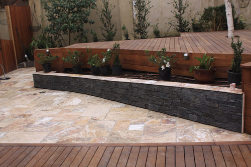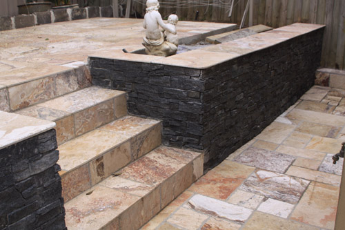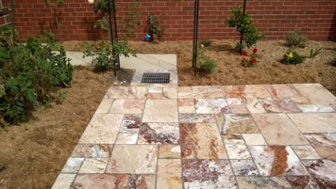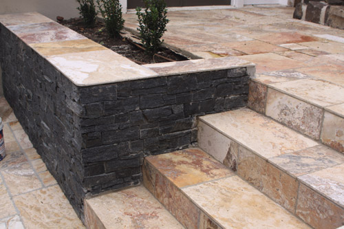 Travertine Tile in the colour Lava with a lovely Brushed and Chiselled Edge is great outdoors
