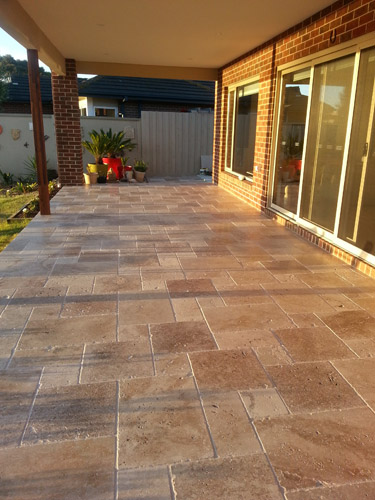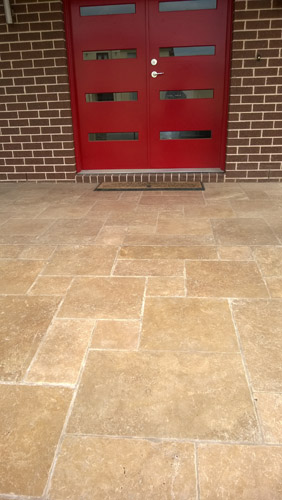 Travertine Tile in the colour Noche with a lovely Tumbled and Unfilled finish is great around for around the house.