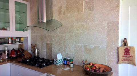 Travertine Tile in the colour Light Medium with a lovely Tumbled and Unfilled finish is great around the house.